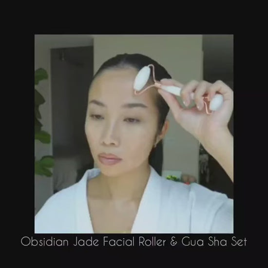 Obsidian Jade Facial Roller & Gua Sha Set 100% Natural Source Massager
